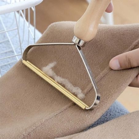 Rasoir anti-bouloches en bois massif, idéal pour éliminer bouloches, poils d'animaux et peluches sur vos textiles.