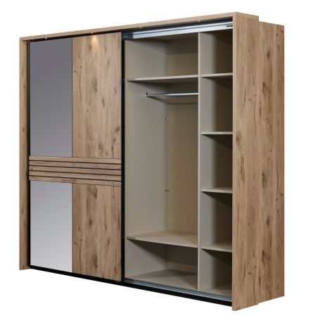 Armoire 2 portes coulissantes avec miroir et leds aspect bois et noir - NIKITA.