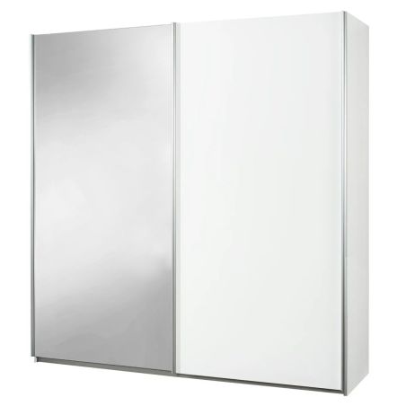 Armoire 2 portes coulissantes blanc laqué avec 1 porte miroir - MARIANE.