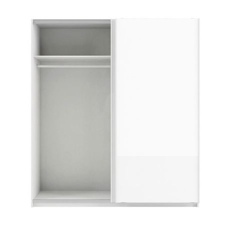 Armoire 2 portes coulissantes 180x210 cm + complément 2 étagères laquée blanc brillant - SWAM.