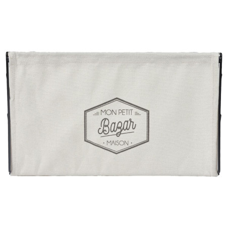 Bac de Rangement Pliable en Métal Noir et Tissu Blanc 38x28cm.