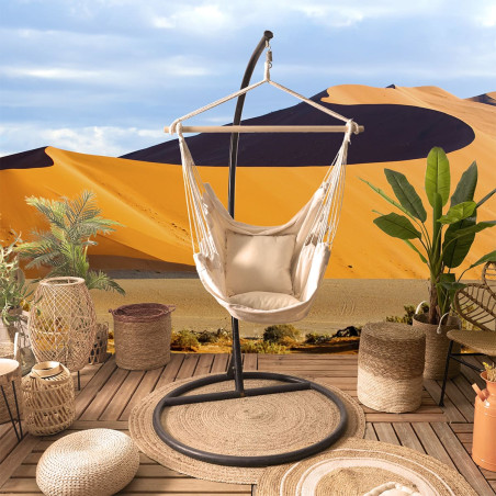 Balancelle 125x98cm en Bois Toile Tissu Beige.
