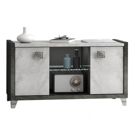 • HOFFMAN - Meuble TV 2 Portes 105cm Gris Aspect Pierre avec Led
