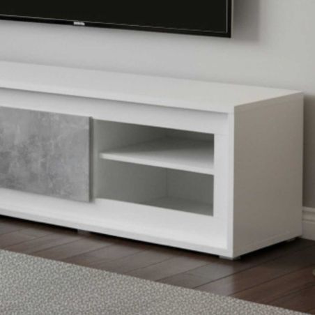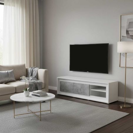 Meuble TV 2 Tiroirs Effet Béton avec Eclairage Led de la gamme Skala.