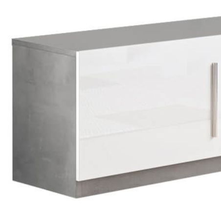 Meuble TV 2 Portes Moderne Laqué Blanc et Marbre avec Leds de la gamme Clark.