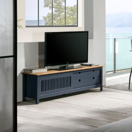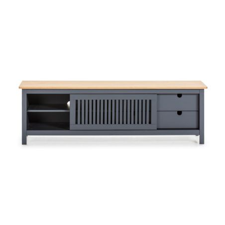 Meuble TV 1 porte coul. 2 tiroirs en bois ciré et gris foncé - MALIA.