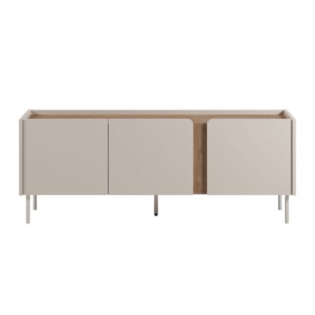 Contrairement aux designs angulaires, ce buffet présente des angles adoucis sur le corps principal et au niveau de l'insert central, ajoutant une sensation de douceur et de modernité.