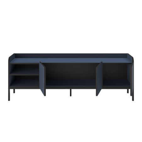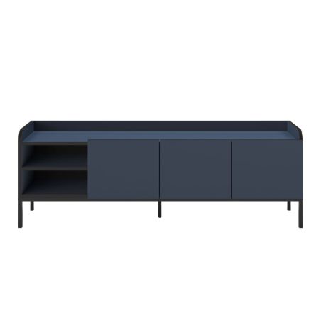 Meuble TV 3 portes 2 niches en mélaminé bleu et noir pieds métal noir - AELIA.