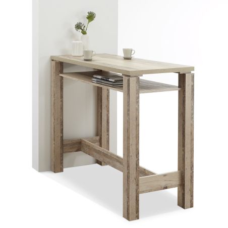 Table-bar 120cm avec étagère aspect bois vieilli - KOLYA.