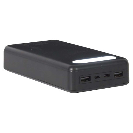 Batterie de Secours Externe 30000mAh Noire avec Lampe LED.