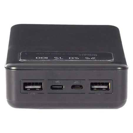 30000mAh. 1 port USB-C + 2 ports USB + 1 port micro USB.