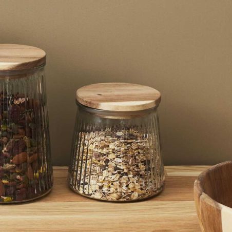 Bocal en verre de 65cl avec bouchon en acacia, conçu pour stocker vos aliments secs en vrac tels que riz, farine et graines.