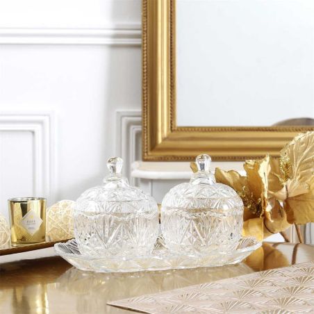 • Duo de Bonbonnières sur Plateau en Verre 145cl