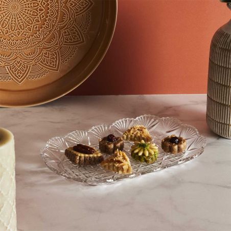 Ensemble élégant reposant sur un plateau en verre, idéal pour une présentation sophistiquée de vos friandises préférées.