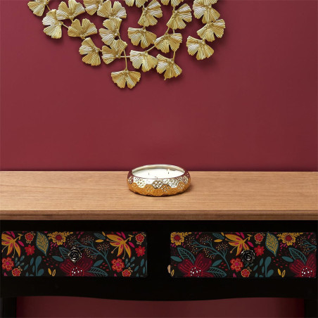 En plus de sa senteur envoutante, son pot en céramique dorée style éthnique rend cette bougie totalement irrésistible.