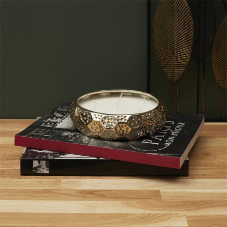 Bougie Parfumée en Céramique Dorée 7 Mèches Senteur Ambre Ø20cm.