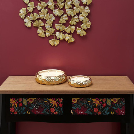En plus de sa senteur envoutante, son pot en céramique dorée style éthnique rend cette bougie totalement irrésistible.