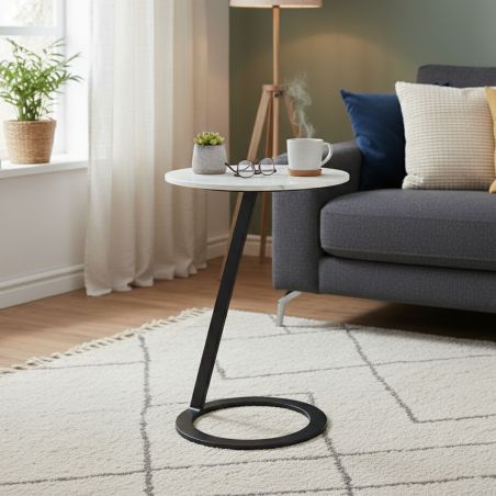 Table d'Appoint Design Plateau Aspect Marbre de la gamme Drake.