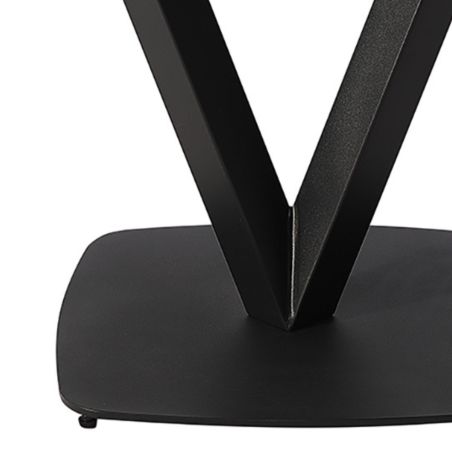 Piètement en acier, laqué époxy anthracite mat. Plateau en verre feuilleté 12mm, peinture cuite au four, finition aspect céramique (résistant aux rayures).