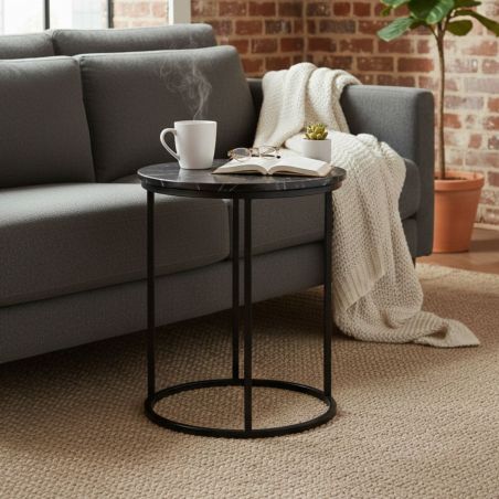Table d'Appoint Marbre et Piètement Noir de la gamme Marva.