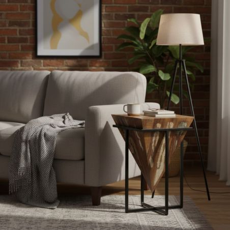 Table d'Appoint H.56cm Pyramide Inversée Bois Massif et Métal Noir de la gamme Findy.