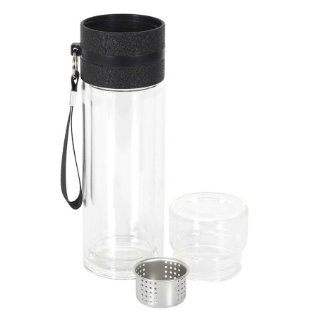 Pratique et nomade, cette bouteille de transport en verre double paroi présente un compartiment permettant de contrôler le degré d'infusion. Emportez vos boissons préférées n'importe où, elles resteront au chaud.