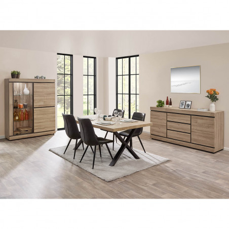 Buffet 2 Portes 3 Tiroirs Aspect Bois Finition French Oak de la gamme Massire.