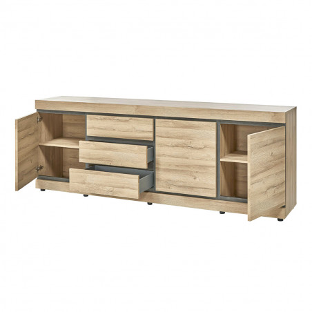 Buffet 3 Portes 3 Tiroirs Aspect Bois Finition French Oak de la gamme Massire.