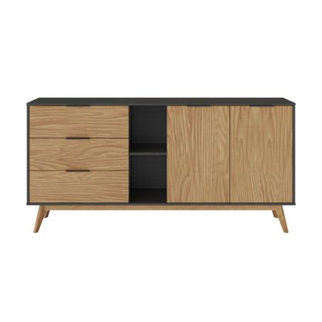 Buffet 165cm 2 Portes 3 Tiroirs Scandinave en Pin Massif Ciré de la gamme Vikov.