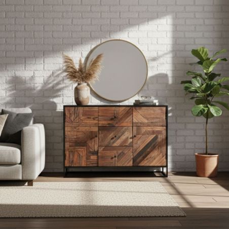 Buffet 2 Portes 3 Tiroirs en Métal Noir et Bois Recyclé de la gamme Jordan.