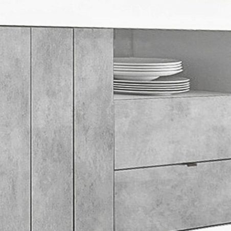 Buffet 2 portes 2 tiroirs et 1 niche blanc laqué et aspect Cimento de la gamme Paolino.