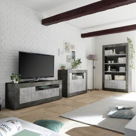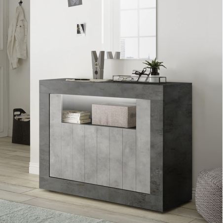 Buffet 2 portes 1 niche gris aspect Cimento et Oxyde de la gamme Paolino.