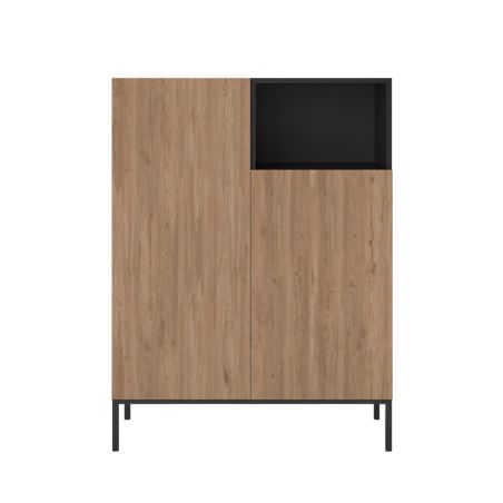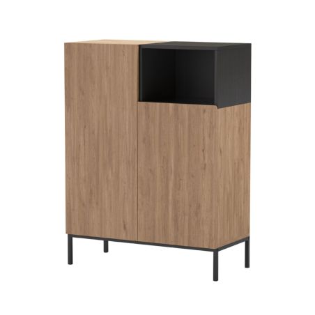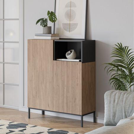 Meuble de rangement 2 portes en mélaminé imitation bois et noir piètement métal laqué noir - CALLAS.