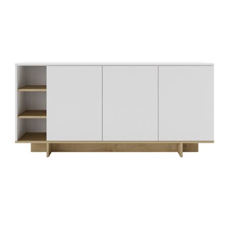 Buffet 3 portes 3 niches 170cm en mélaminé blanc et imitation bois - ESQUISSE.