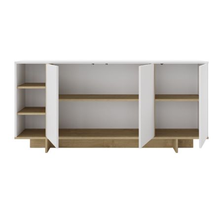 Optimisez votre espace avec ce grand buffet épuré et lumineux, inspiré du meilleur du design scandinave et contemporain. Avec ses lignes nettes et son jeu de contrastes bi-matières, il apportera clarté et organisation à votre séjour.