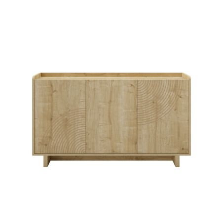 Buffet 3 portes 140cm en mélaminé imitation bois décor relief fraisé - RIAD.