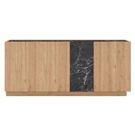Buffet 4 portes 180cm en mélaminé imitation bois et marbre noir - ODALYS.