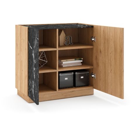 Buffet 2 portes en mélaminé imitation bois et marbre noir - ODALYS.