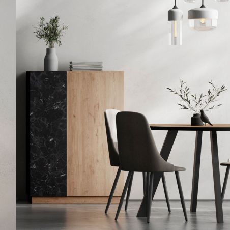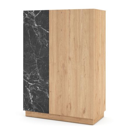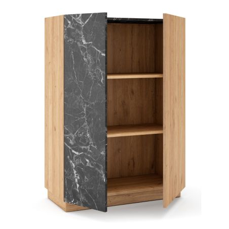 Meuble de rangement 2 portes en mélaminé imitation bois et marbre noir - ODALYS.