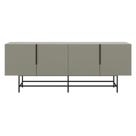 Buffet 4 portes en mélaminé vert kaki et piètement et poignées en métal laqué noir - ALDINE.