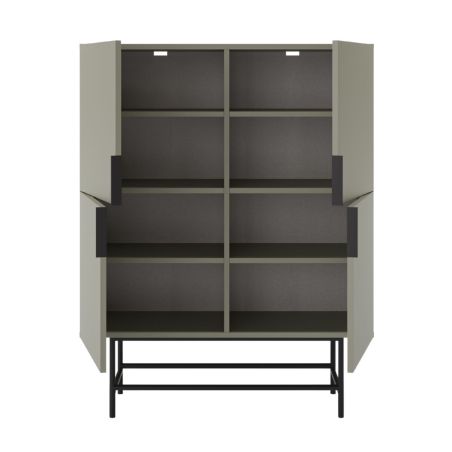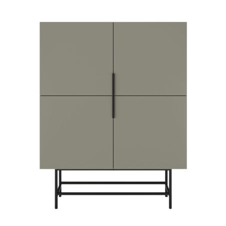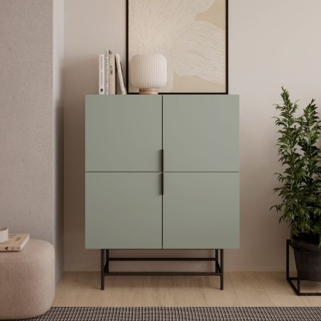 Meuble de rangement 4 portes en mélaminé vert kaki et piètement et poignées en métal laqué noir - ALDINE.