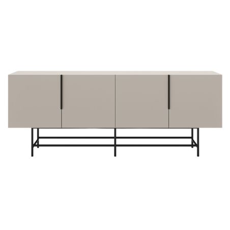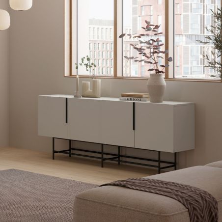 Buffet 4 portes en mélaminé beige et piètement et poignées en métal laqué noir - ALDINE.