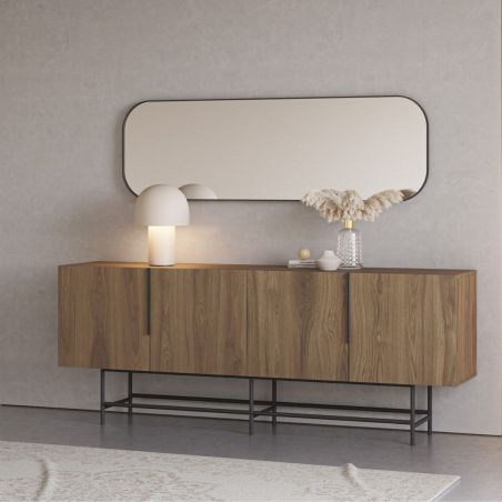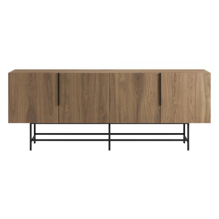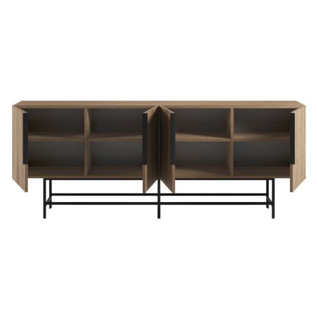 Buffet 4 portes en mélaminé imitation bois et piètement en métal laqué noir - ALDINE.