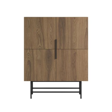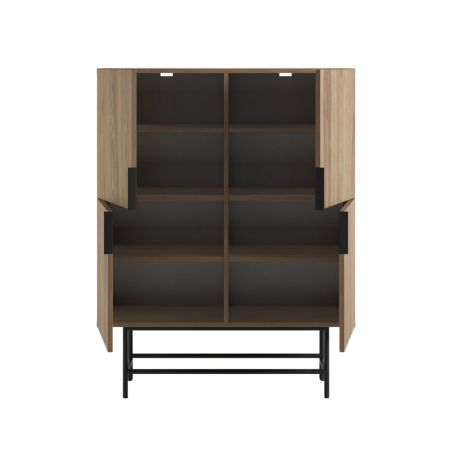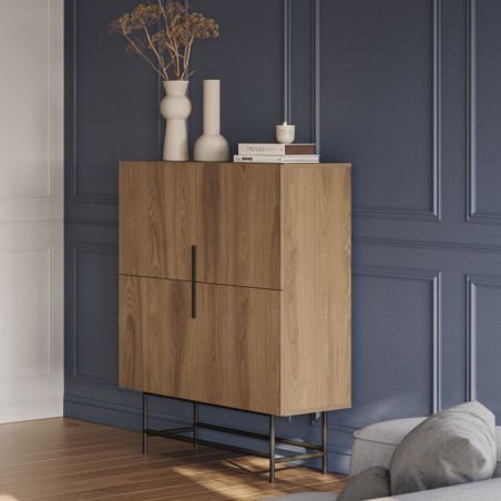 Meuble de rangement 4 portes en mélaminé imitation bois et piètement et poignées en métal laqué noir - ALDINE.