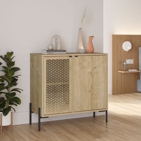 Adoptez une ambiance douce et exotique dans votre intérieur avec ce rangement qui réinvente le style bohème. Ce meuble combine la simplicité chaleureuse du bois clair avec un détail de façade ajourée très tendance pour une touche d'originalité.