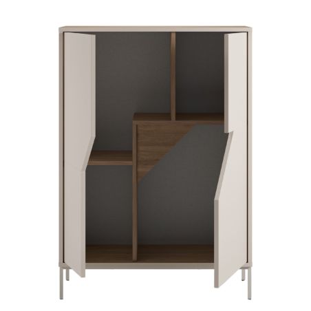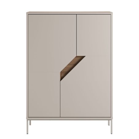 Meuble de rangement 2 portes en mélaminé beige et imitation bois avec découpe graphique oblique - ANOUK.