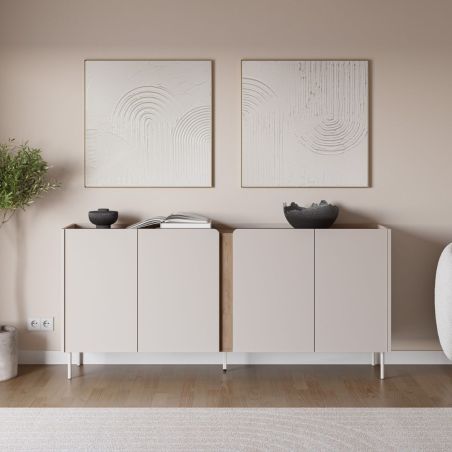 Optez pour la simplicité raffinée avec ce buffet qui incarne le minimalisme élégant. Ses lignes douces, son jeu de contraste subtil et son piètement discret en font un meuble parfait pour une ambiance sereine et contemporaine.
