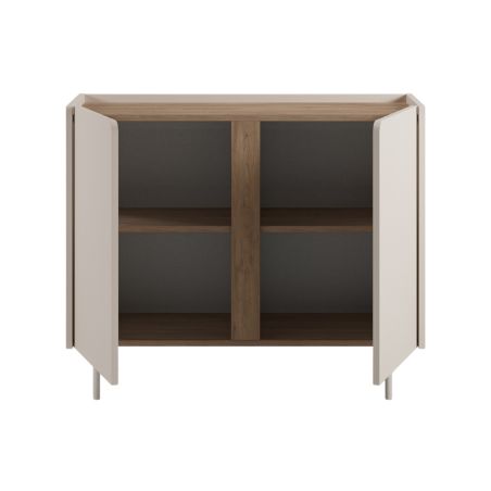 Contrairement aux designs angulaires, ce buffet présente des angles adoucis sur le corps principal et au niveau de l'insert central, ajoutant une sensation de douceur et de modernité.