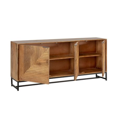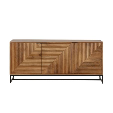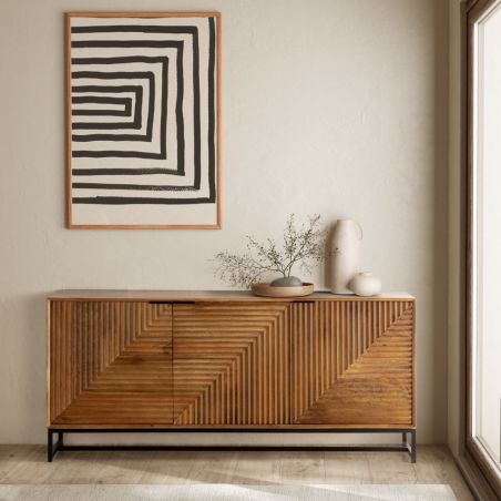 Buffet 3 portes en manguier massif relief graphique oblique piètement métal laqué noir - NERIA.