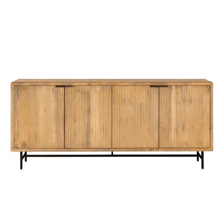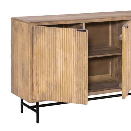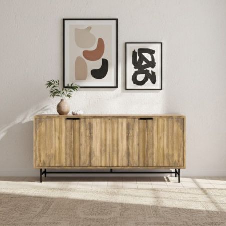 Buffet 4 portes en manguier massif relief graphique vertical piètement métal laqué noir - MELKA.